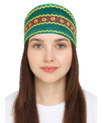 Кокошник "Радуга" зеленый с желтой тесьмой